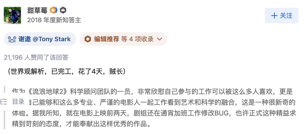 影片上映不久,知乎答主“甜草莓”,同时也是《流浪地球2》人工智能领域科学顾问的崔原豪博士就在知乎发表了一篇近2万字的“世界观解析”,讲解影片背后的世界设定。
