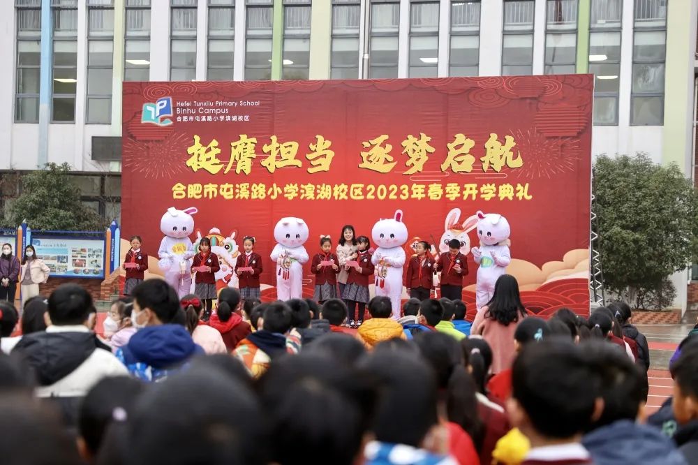 在合肥市包河区,2月6日上午,合肥市屯溪路小学滨湖校区举行了以“挺膺担当 逐梦启航”为主题的2023年春季开学典礼。据包河区融媒体中心消息,现场,学生代表齐声朗诵《满江红》。抑扬顿挫、声情并茂,孩子们用最质朴的语言、最真挚的情感,致敬传统经典。