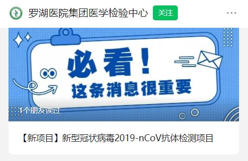 近日,深圳市罗湖医院集团医学检验中心发布通知:为了应对疫情变化,深圳市罗湖医院集团医学实验室已开展新型冠状病毒2019-nCoV抗体检测项目,包括新型冠状病毒2019-nCoV抗体IgM和IgG检测。