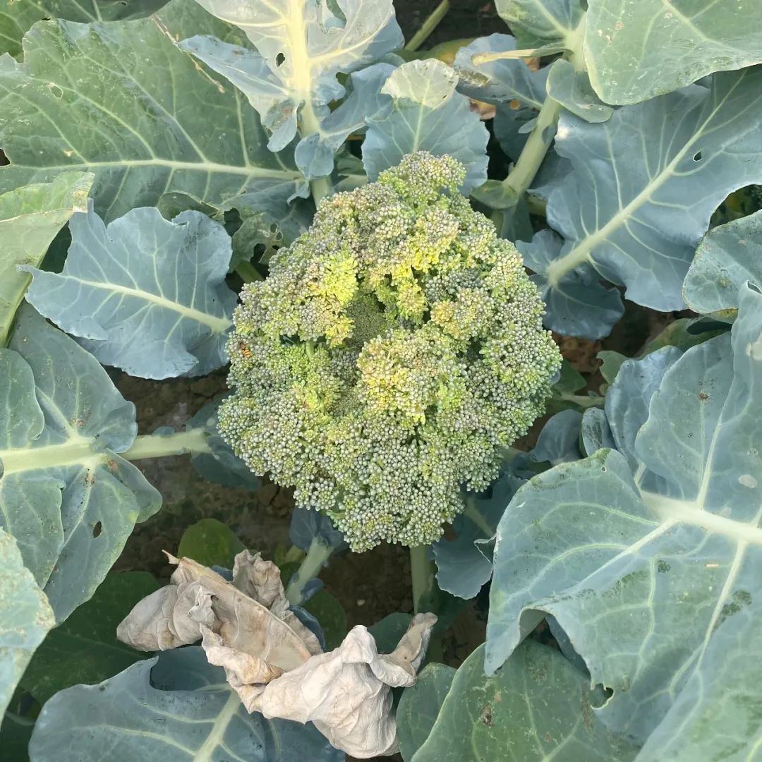 2022年春天我们在昌平种植的西兰花,晒得老化发黄,周围农户的情况也不如往年。往年我们总是担心温度太低,但去年反倒温度偏高。几次反常的短暂高温,就让西兰花的花球变了颜色。消费者如果把这样的菜花拿回家,会发现叶片上面的一层 “蜡粉”会比往常更厚。这是植物为了在阳光的辐射之下保护自己,不至于受高温失水。