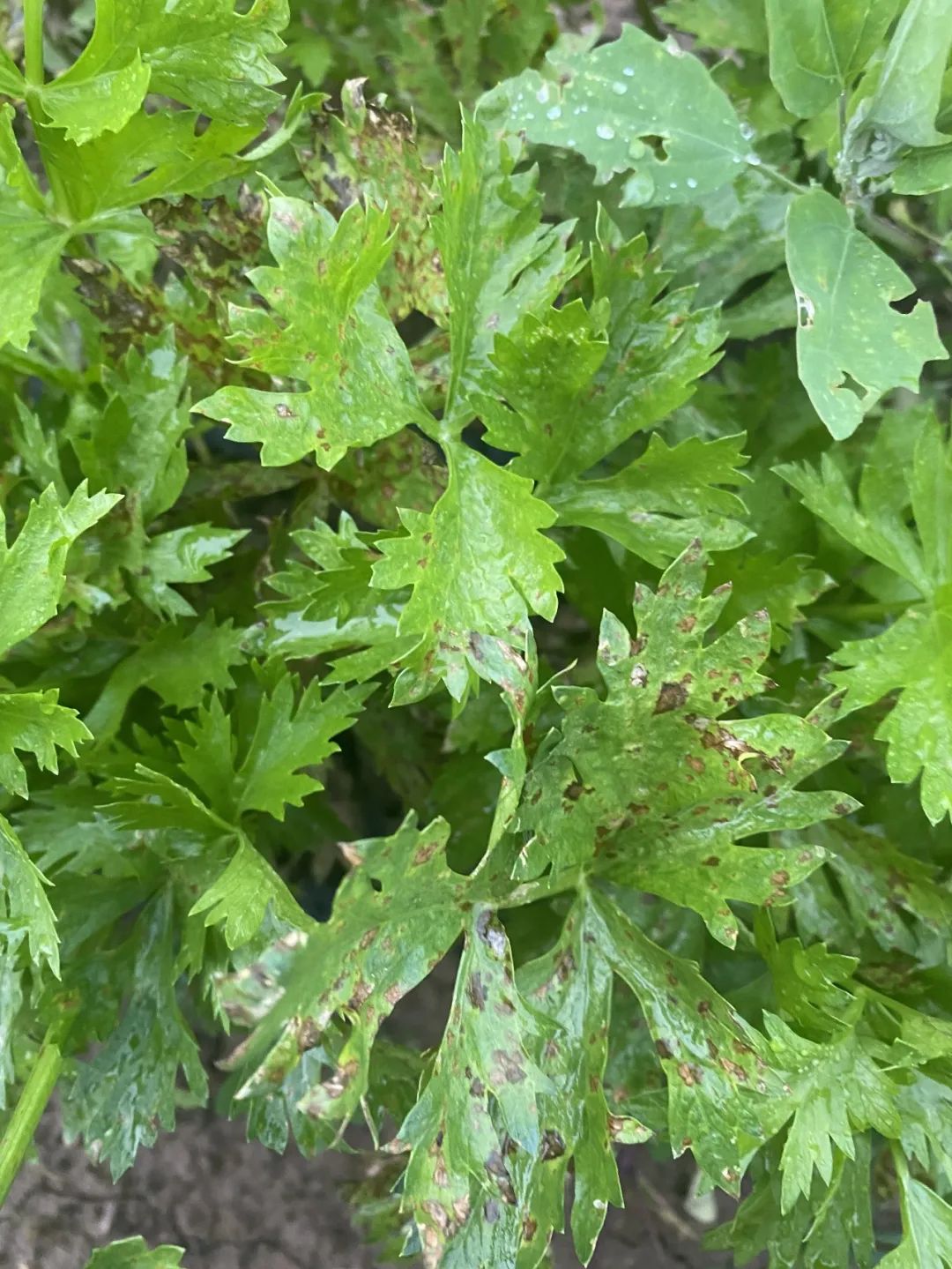 ●山西灵丘,得了叶斑病的露地芹菜。去年买到我们农场芹菜的顾客更有体会。
