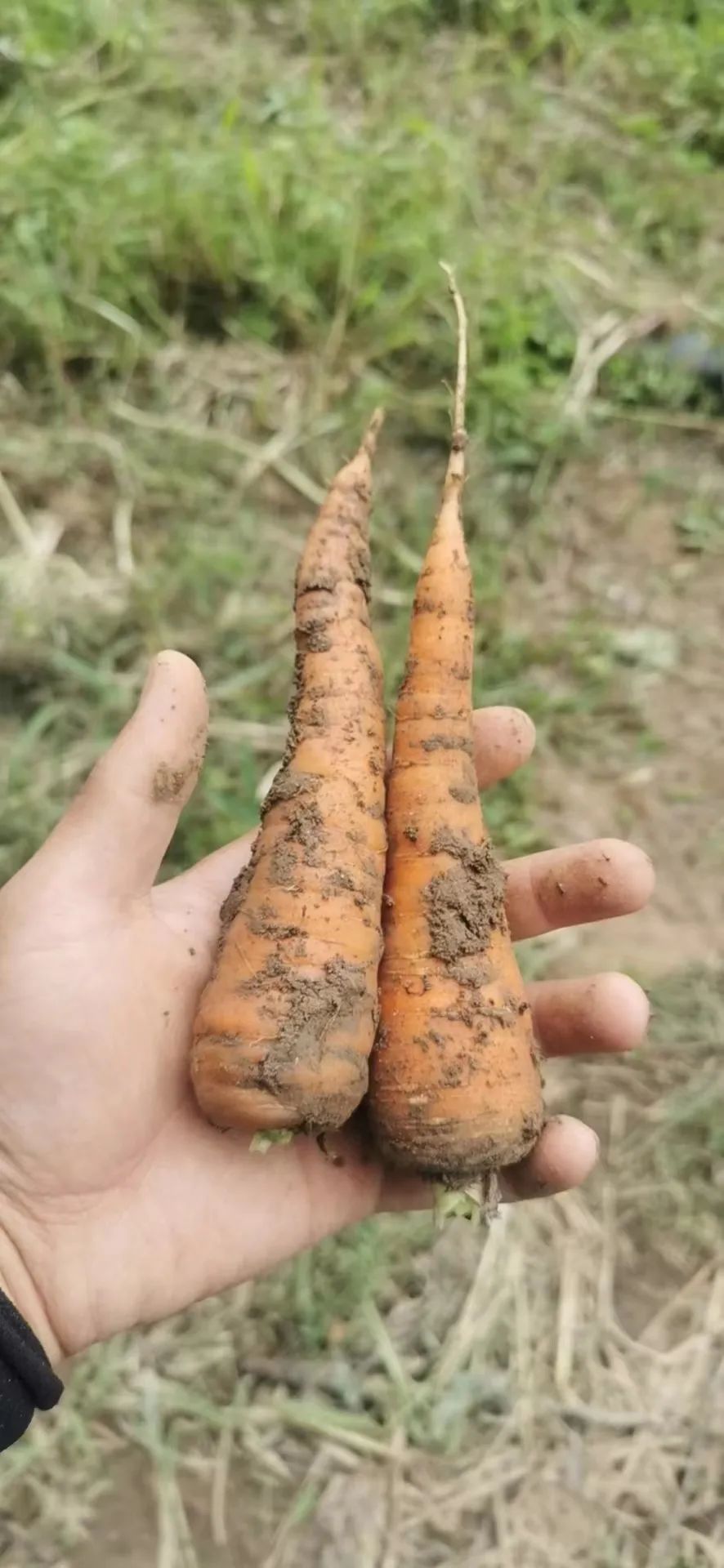 ●这个胡萝卜长得马马虎虎,是因为当地温度偏高,地上部分容易发生早衰,地下部分不好成型。