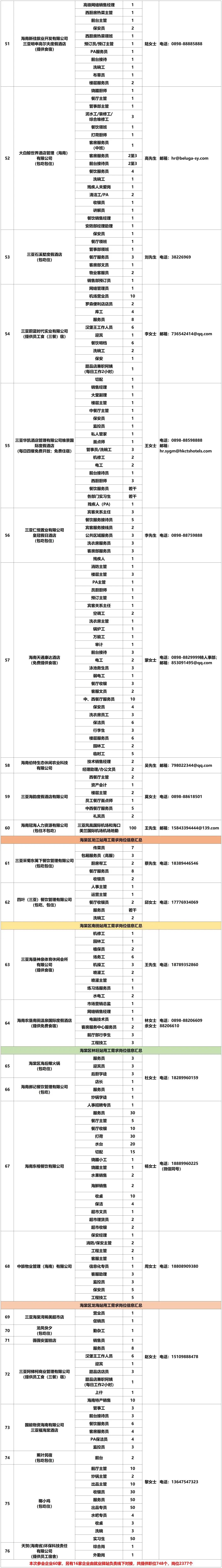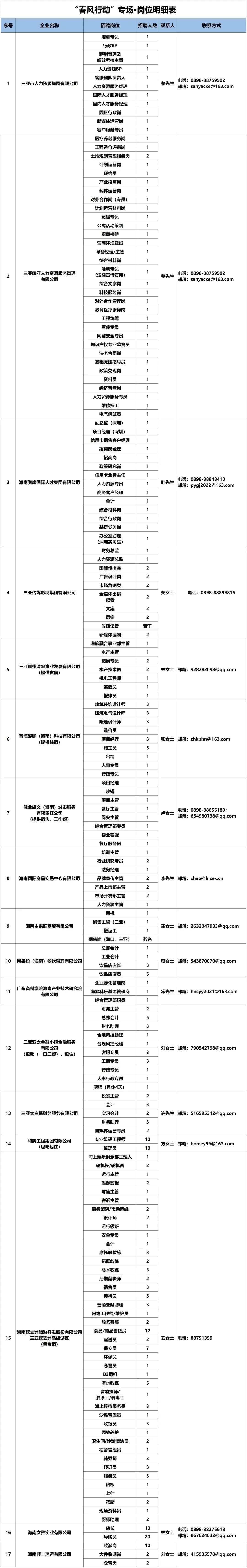 (三亚市吉阳区迎宾路189号市人力资源市场二楼招聘大厅)
