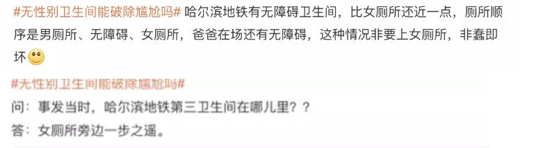 尤其地铁官方称,哈尔滨地铁内明明有无障碍卫生间,可作多用途卫生间。