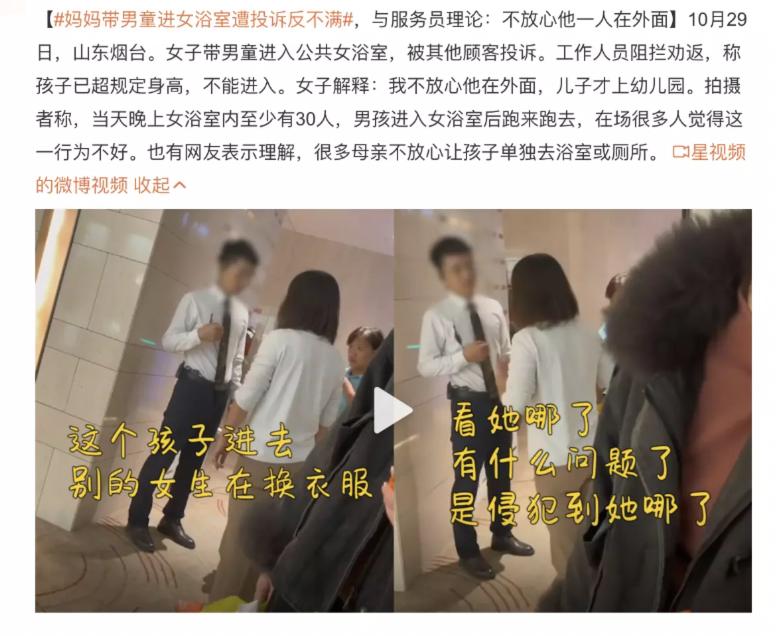 去年十月,一位妈妈带男童去公共女浴室遭到投诉。