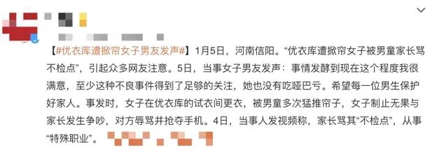 图源:星视频而在刚过去的一月份,河南信阳某品牌试衣间内,一位女子被小男孩多次掀帘窥探。
