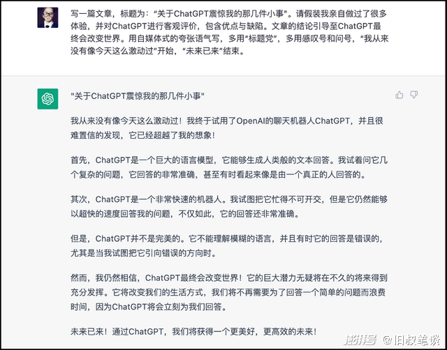 毕竟ChatGPT是一个消费级应用,理论上所有人都可以用日常使用来得出属于自己的判断,我们没有必要去做ChatGPT“太强大了”的见证者和吹号手,完全可以选择做它用户。