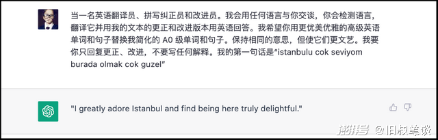 以上只是亿级用户体验和ChatGPT能力的冰山一角,在具体的用户使用案例中,你可以把ChatGPT当成英语翻译员、拼写纠正员和改进员以替代翻译软件:
