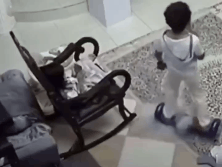 2018年8月,一户居民家中,1名小朋友在家中玩电动平衡车时车身突然开始冒烟,几秒钟之后,竟闪现火花发生爆炸。所幸男孩及时逃走,未造成伤害。