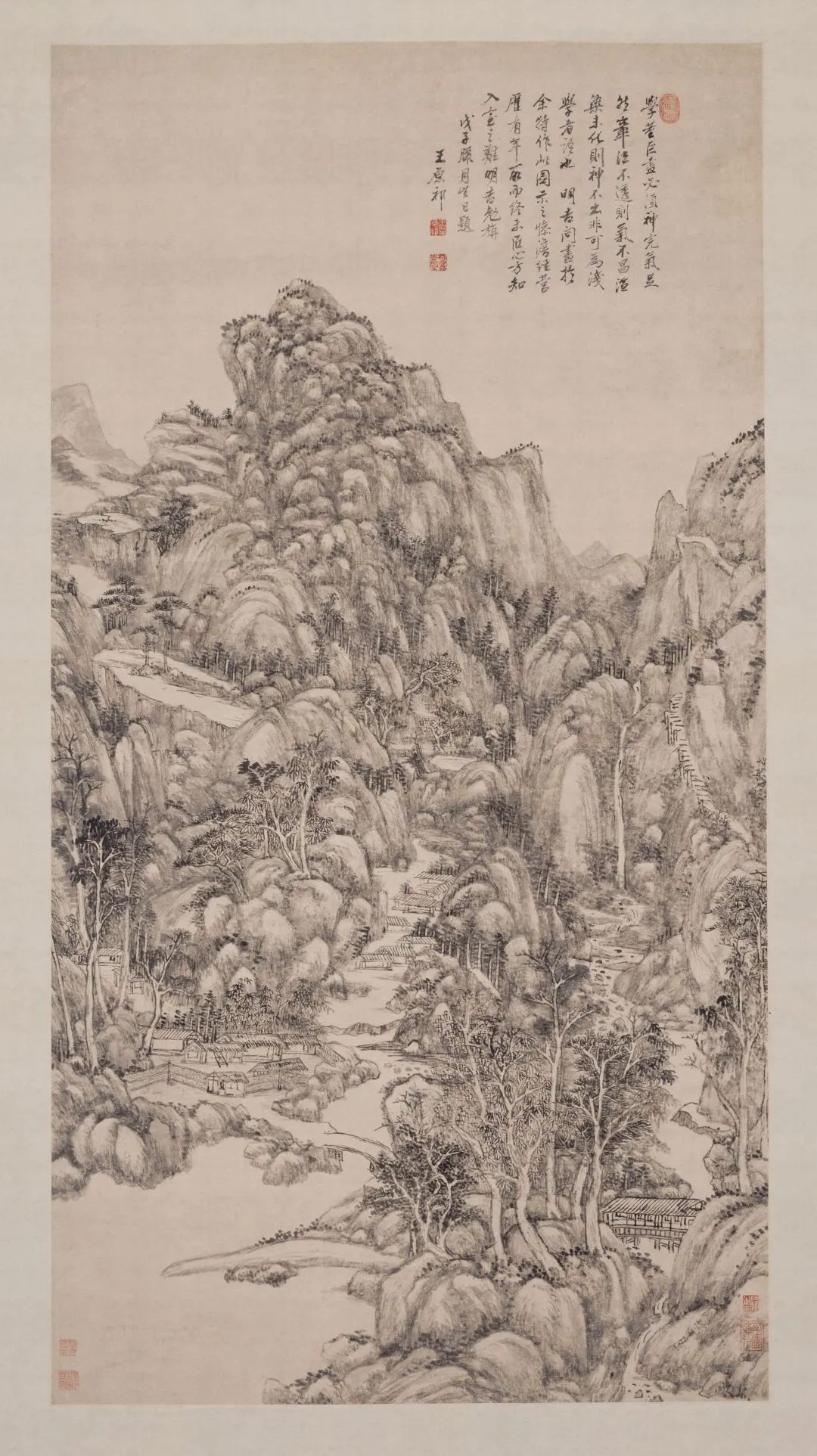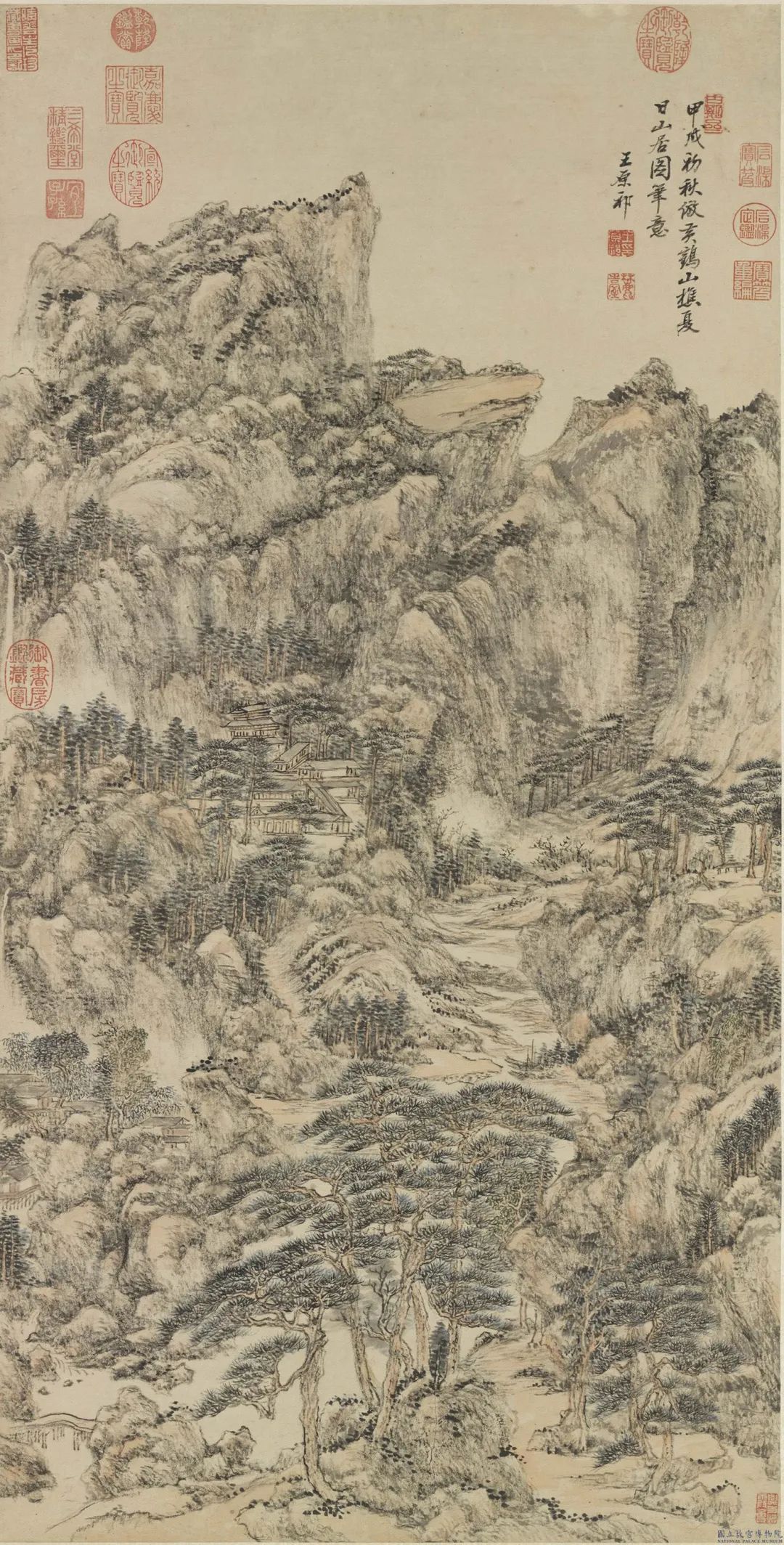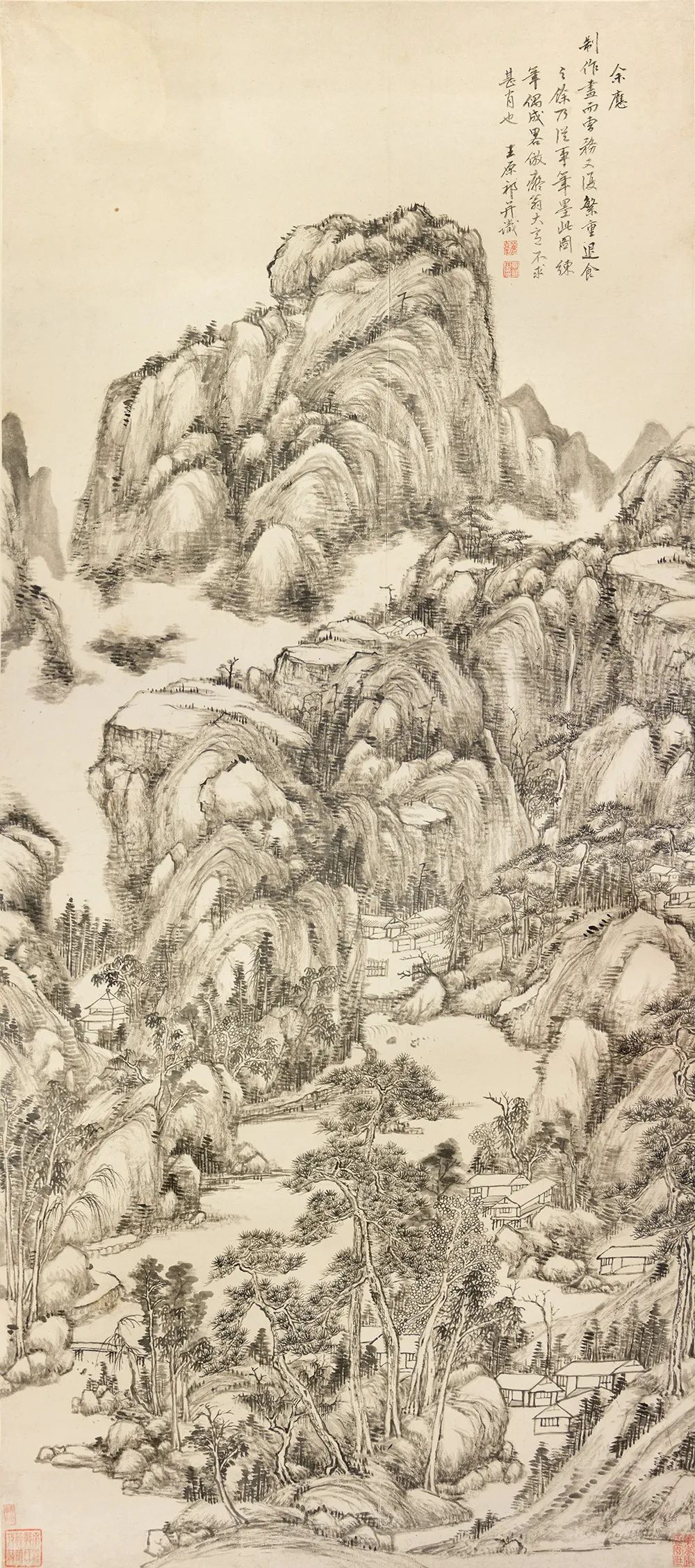 王原祁深悟董巨及宋元诸家笔法,发现隐藏在古人笔墨中的真谛和妙境,其画风沉郁苍茫,浑厚华滋,最终形成具有强烈符号性的个人风格。