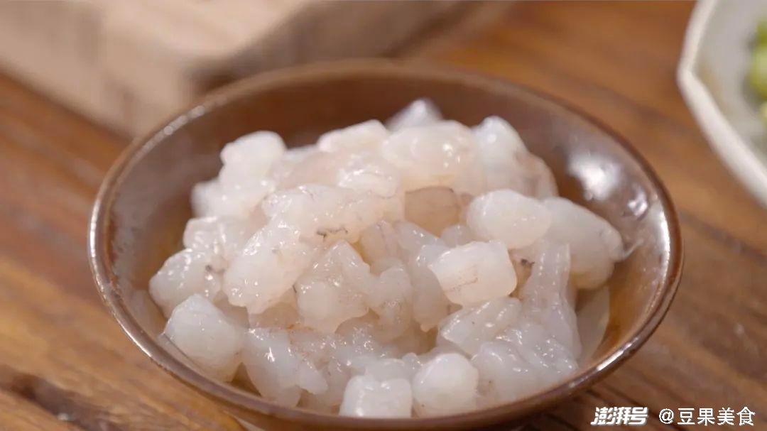2.里脊肉、胡萝卜、黄瓜、虾仁切丁,蒜苗切段