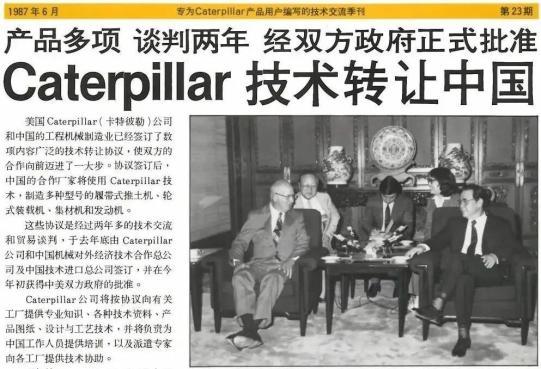 1986年,在中国机械工业部的牵头下,12家国企同卡特彼勒签订了技术转让合同,共同对卡特彼勒的技术进行拆分,每家企业负责其中的数项技术,各自消化。