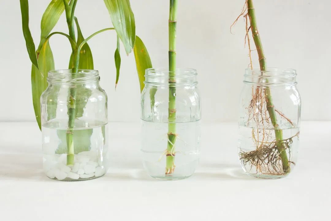 不是所有的富贵竹买来都会有根系,有些富贵竹就是一根枝条,如果想要长久地将富贵竹养下去,就需要将富贵竹进行发根。可以将富贵竹枝条进行45°斜切,增加水分吸收。在伤口干燥后将枝条放置于阴暗处,期间减少换水频率(除非水质被污染),约20天左右可生根。