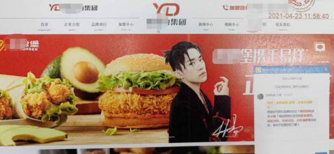 此前,XX堡餐厅曾在薯条、汉堡、饮料等商品外包装上使用了易烊千玺的肖像。