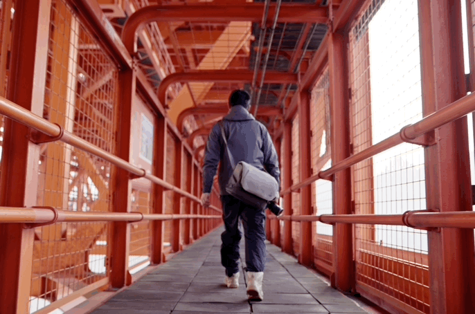 坝陵河大桥也是贵州唯一能进入主梁桁架内参观的世界级大桥,红色的钢铁桥桁,交织出一个个鸟巢一般的网眼,山风在周围穿梭,极目远眺,蓝天仿佛也被红色的几何结构切割成了“蓝宝石七巧板”,拣一块天空拼图,让白云“海绵”吸收脚下的钢铁巨龙震颤的跫音。