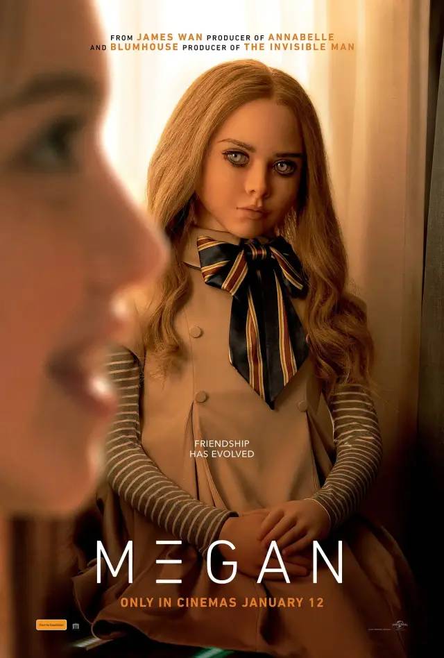 《梅根》来头很大。创意上延续了《鬼娃回魂》《死寂》《安娜贝尔》的人偶灵感,恐怖谷效应拉满。