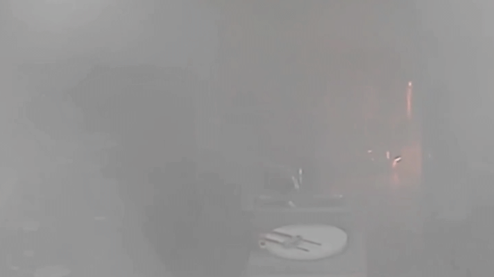 2022年7月13日,湖北恩施一餐厅后厨油锅起火,厨房阿姨手足无措情急之下,三番五次试图用嘴吹灭火,眼见火势不减,最后竟向锅内加水致火势瞬间扩大烟雾充斥整个厨房。