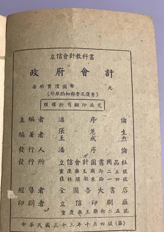 1937年,被誉为“中国现代会计之父”的潘序伦创办立信会计专科学校,邀请张蕙生兼任教授。11月,全面抗战爆发后,潘序伦绕道香港去重庆,重振立信会计事业。