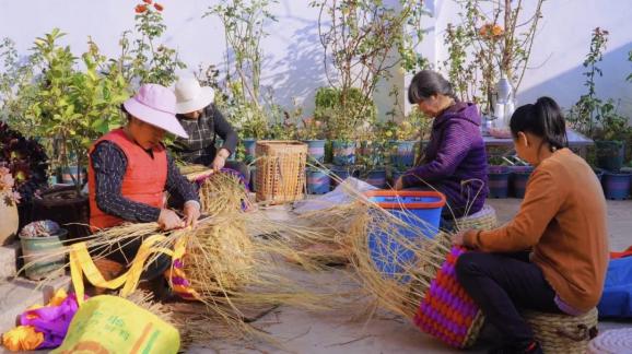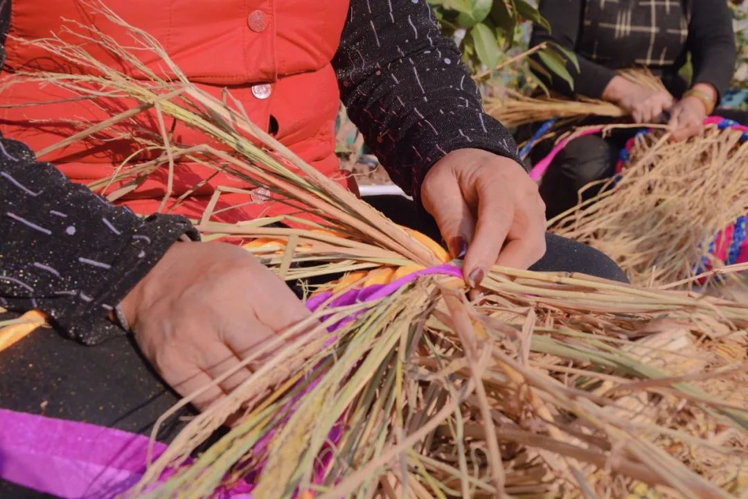 眼神专注,动作利索。2月9日,在永建镇永瑞村委会禾谷村,李云琴正在和本村几名妇女一起编织巍山本地的“土沙发”——草墩,一根根稻草在他们手上慢慢成形,编织完成就可上市销售了。