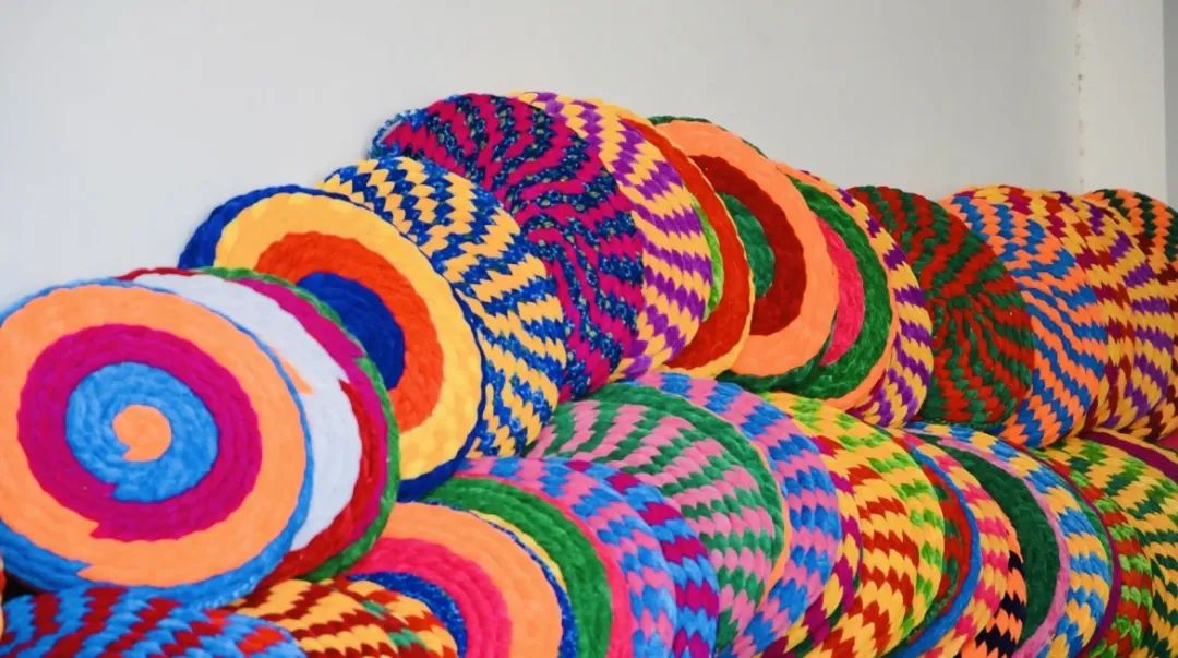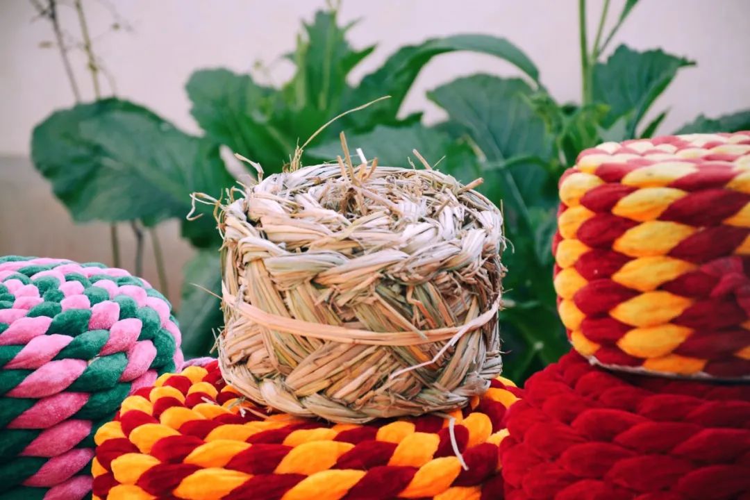 草墩就是用稻草编织而成的墩子,整个过程历经泡草、编织墩芯、镶嵌各色布条等环节。巍山草墩不仅造型、色彩独特,而且环保、质软、舒适度高,深受本地群众和外地游客的喜爱。禾谷村编织草墩历史悠久,是全县境内编织草墩的主要村落。据永瑞村党总支副书记杨桥介绍,全村100多户人家中有100多人从事草墩编织,2019年,村里成立了忠民草墩编织农民专业合作社,采取“党支部+合作社+农户”的模式发展草墩产业,随后还注册了“瑞禾秀墩”商标。近年来,随着传统手工艺品在市场逐渐走俏,到本村定购草墩的县内外客商也逐渐增多,村集体经济不断壮大,同时还实现了草墩编织手艺传承、经济发展、环境保护“三赢”,“土沙发”编织也成了村里群众增收致富的好产业。