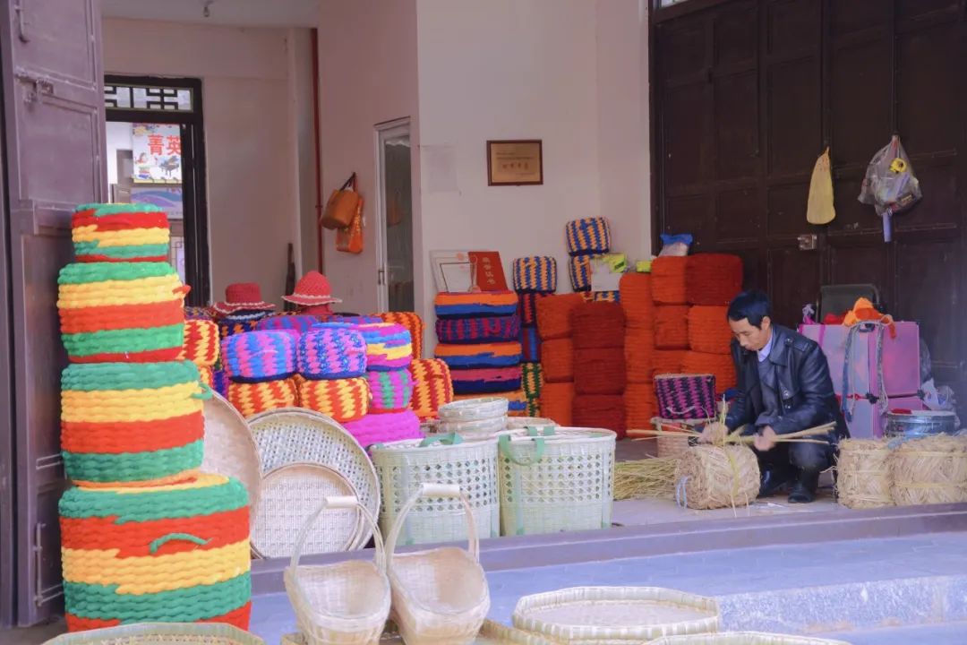 而禾谷村另一位村民赵玉录则将手艺“搬”到了永建镇东莲花美食文化旅游产业园进行展销。“我已经编了二十多年了,来到东莲花三年多,我家的草墩质量好,一直都很好卖。来东莲花以前,巍山长街宴和小吃街的草墩有一部分是我家做的,来这里的游客非常喜欢我家的草墩,去年到现在我家的生意还是非常不错的。”赵玉录一边编织着草墩一边说。