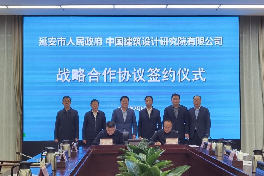 2月6日,中国建设科技集团(简称中国建科)党委书记、董事长文兵一行赴延安,与延安市委副书记、市长严汉平进行会谈交流。中国建科所属中国建筑设计研究院有限公司(简称中国院)总经理马海与延安市副市长王云祥代表双方签订战略合作协议。