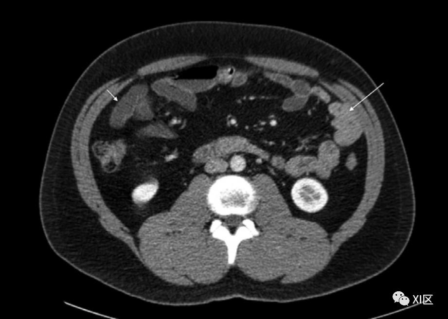图3小肠痉挛。轴位CT小肠造影图像显示了两个类似病理学的局灶性小肠痉挛区域(箭头)。注意没有任何相关的更改。胃和结肠经常扩张,需要仔细评估相关病理。然而,在缺乏正式的泻药准备和双患者定位的情况下,认识到结肠检查的局限性很重要。表2总结了关键提示和缺陷。