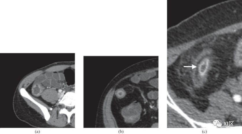 小肠壁增强模式被分为“目标”外观、同质、异质和减弱。