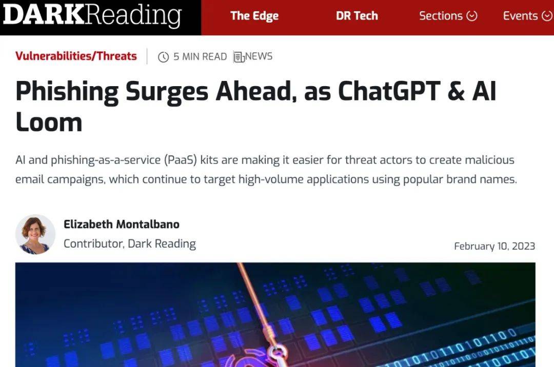 DarkReading报道《随着ChatGPT和AI的出现,网络钓鱼激增》