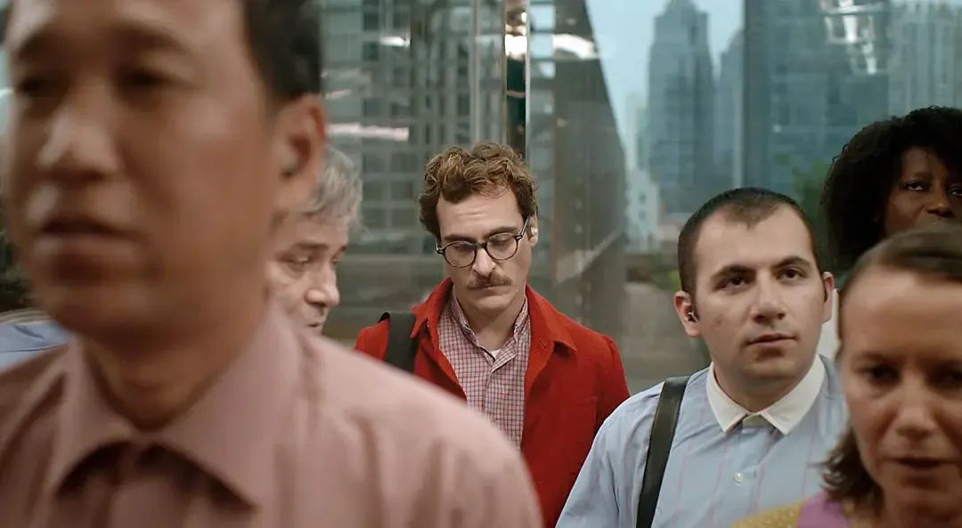 电影《她》剧照,红色衣服为男主随后,围绕“人机恋情”展开的影视演绎、前沿讨论不绝于耳,甚至在2016年,一名法国女性与一名机器人订婚了。