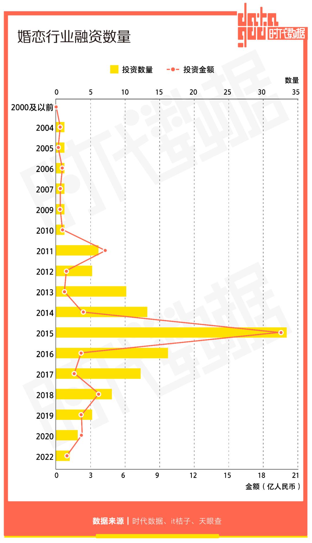 据不完全统计,国内婚恋交友平台的投融资数量在2015年达到顶峰,一年共33起,仅对外披露的融资额就超过了18亿元。
