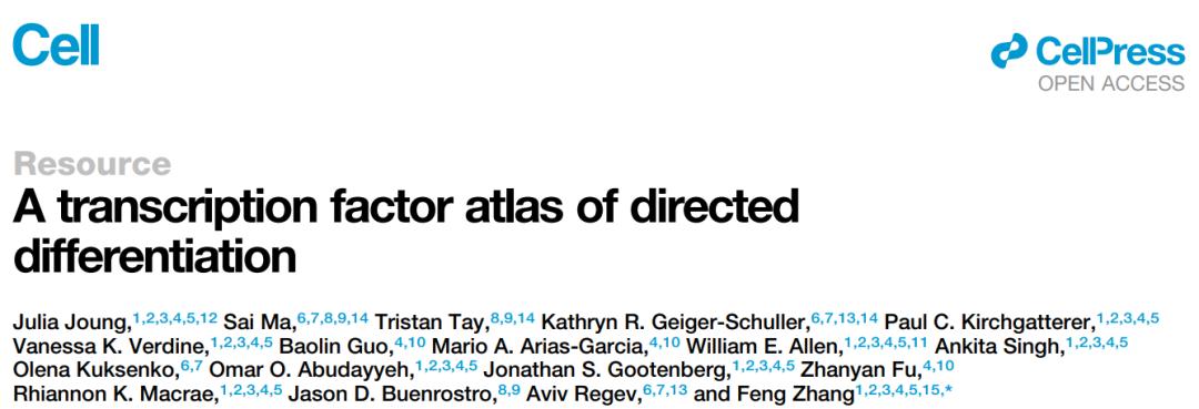 近日,张锋实验室在 Cell 期刊发表了题为:A transcription factor atlas of directed differentiation 的研究论文。