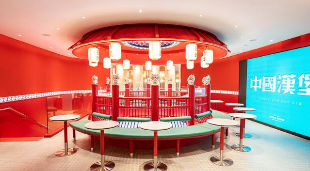 在门店形象上,塔斯汀采用了中国红为主色调,再搭配上中国风的挂饰及清新素雅的原木桌椅,摆脱了汉堡店千篇一律的“肯麦风”装修。