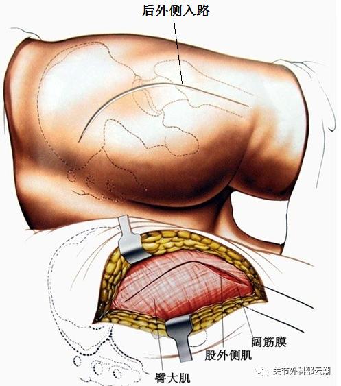 髋关节置换的传统入路中,最常被采用的术式是后外侧入路。该入路从髋关节的后外侧进入,需要撕开部分臀大肌纤维,切断梨状肌与闭孔内肌等短外旋肌群的止点,并剥离股方肌的止点,从后方进入髋关节。