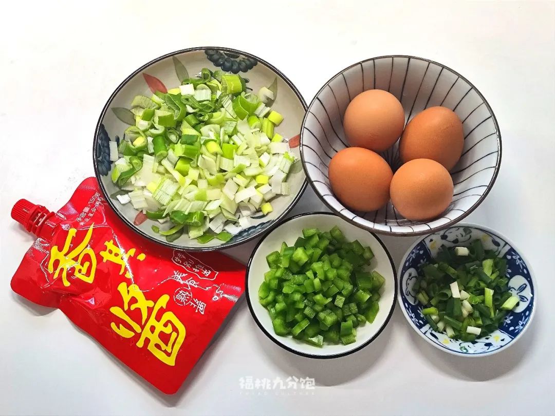 以香其酱为例,一袋酱配四个鸡蛋刚刚好,辣椒丁用普通尖椒就可以,想要颜色好看就放点红辣椒,可别放成小米辣,不然吃的时候就遭罪了。再切点葱花,大葱小葱都行,大葱就用来爆香,小葱则出锅前再加保留香气。