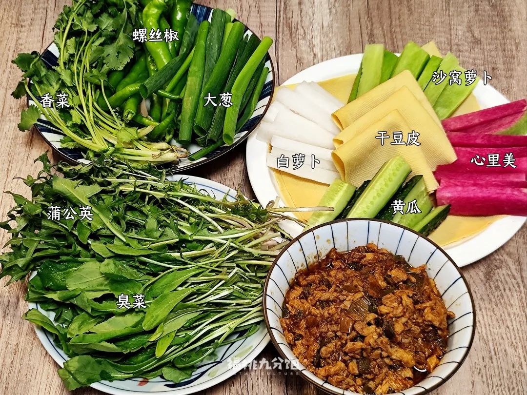 咳咳,言归正传,这些叶菜除了可以直接蘸酱,也可以卷在豆腐皮里,野菜香混着豆皮香,再配上鸡蛋酱,sei次sei资道。