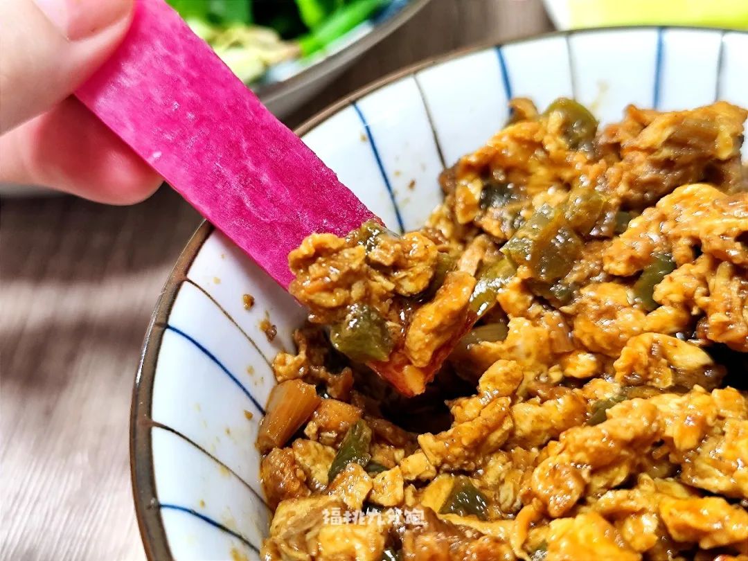不用担心看起来像炖酱,等把食材跟酱的味道慢慢融合,水分减少后油就会析出,成品会还是炒酱的样子。这样,一份万能鸡蛋酱就完成啦!