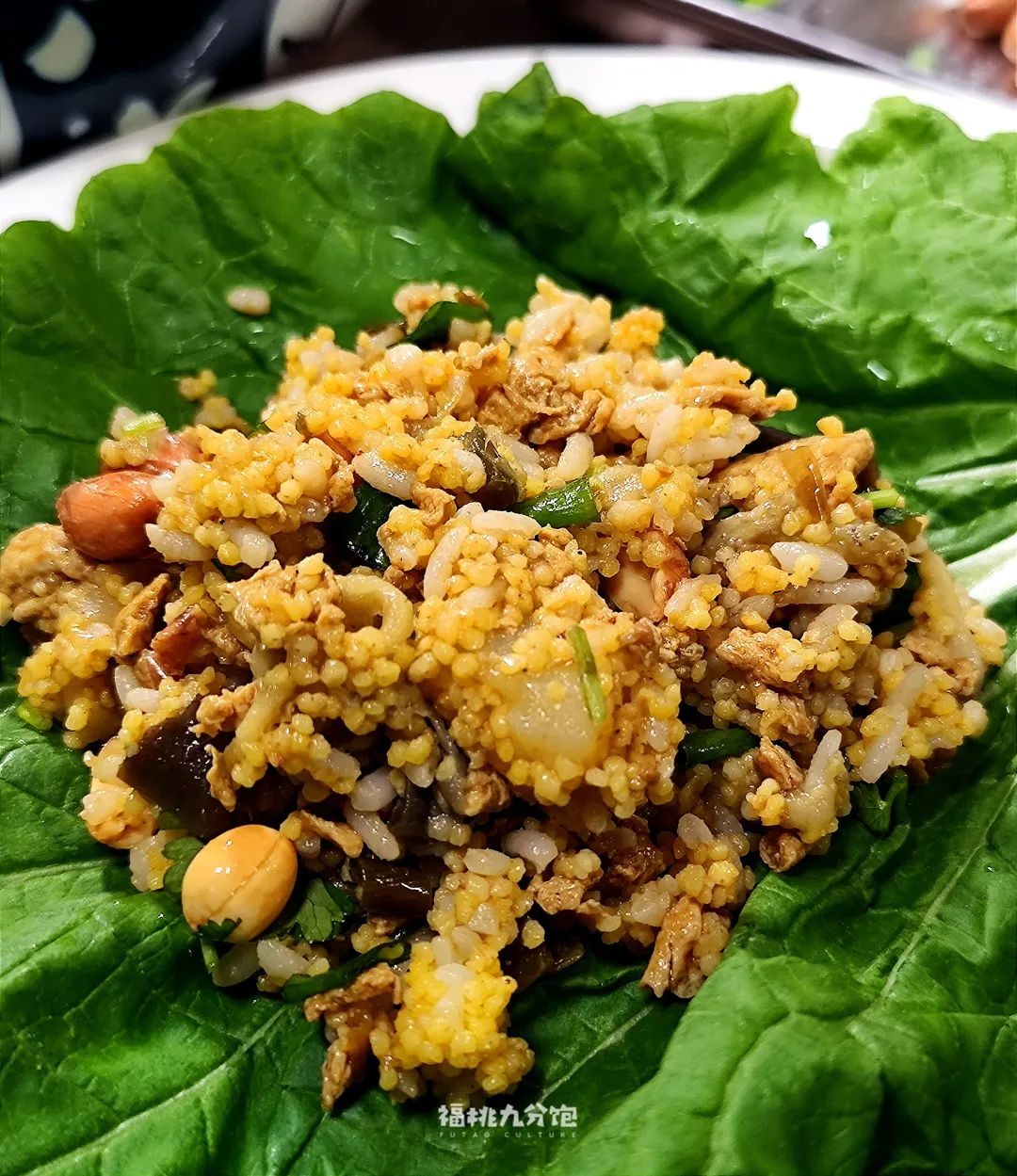 二米饭(严格点就换成杂粮饭)、土豆泥是低GI碳水,炸花生米(严格点就放卤花生或者用空气炸锅)是优质脂肪,茄泥、大白菜叶、葱花香菜提供维生素和纤维、鸡蛋酱提供蛋白质,看起来钠超标,但拌在一起颜色很淡,其实真的没用多少。