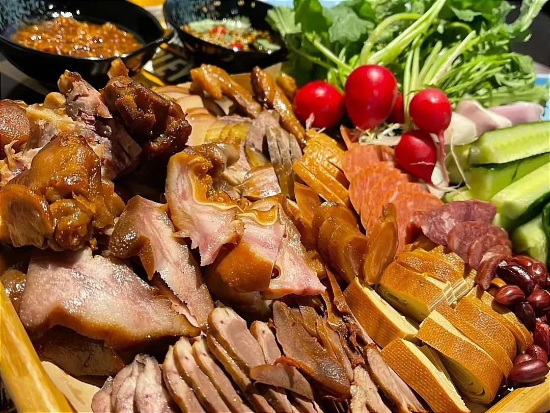 如果还嫌碳水太多,换成切碎的白煮蛋一样美味。无肉不欢的朋友就加一些熟食,便宜的选熏鸡腿,撕吧撕吧放里面,比鸡胸肉好吃一百倍,壕一点就选酱牛肉,牛排再好吃也得趁热吃,酱牛肉就一点不矫情,冷热皆宜。最近在网上很火的熏酱肉拼盘,就很适合跟饭包、蘸酱菜搞个联动套餐。