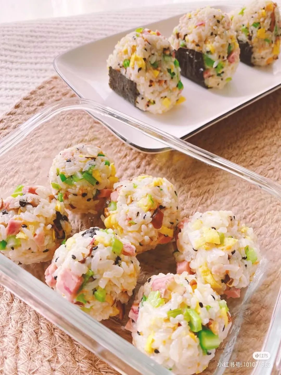 这还不好说嘛,把饭包捏成饭团裹上菜叶,不就是精致小巧的日式便当?用玻璃罐把饭包解构,一层一层码进去,不就是网红沙拉罐?