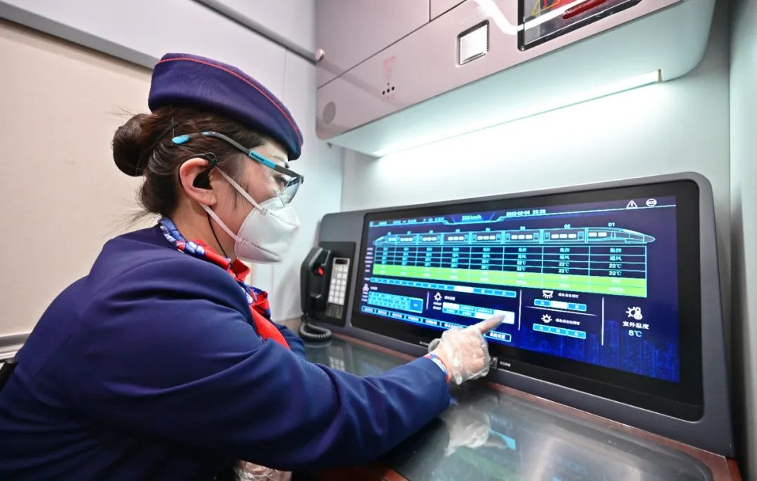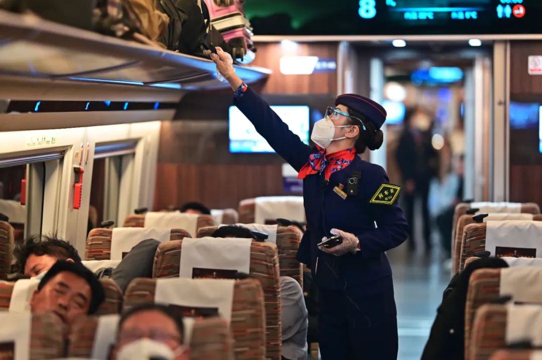 “夜间运行的高铁列车,乘降组织比白天难度大,最主要的是旅客疲劳困倦,容易坐过站或把物品遗忘在列车上。”列车长陈琳说。这位有11年高铁乘务经验的列车长首次担当智能复兴号“红眼高铁”值乘任务,显得有些激动。为做好服务工作,她带领班组人员提前1小时出乘,逐一整理着装、进行礼仪培训。