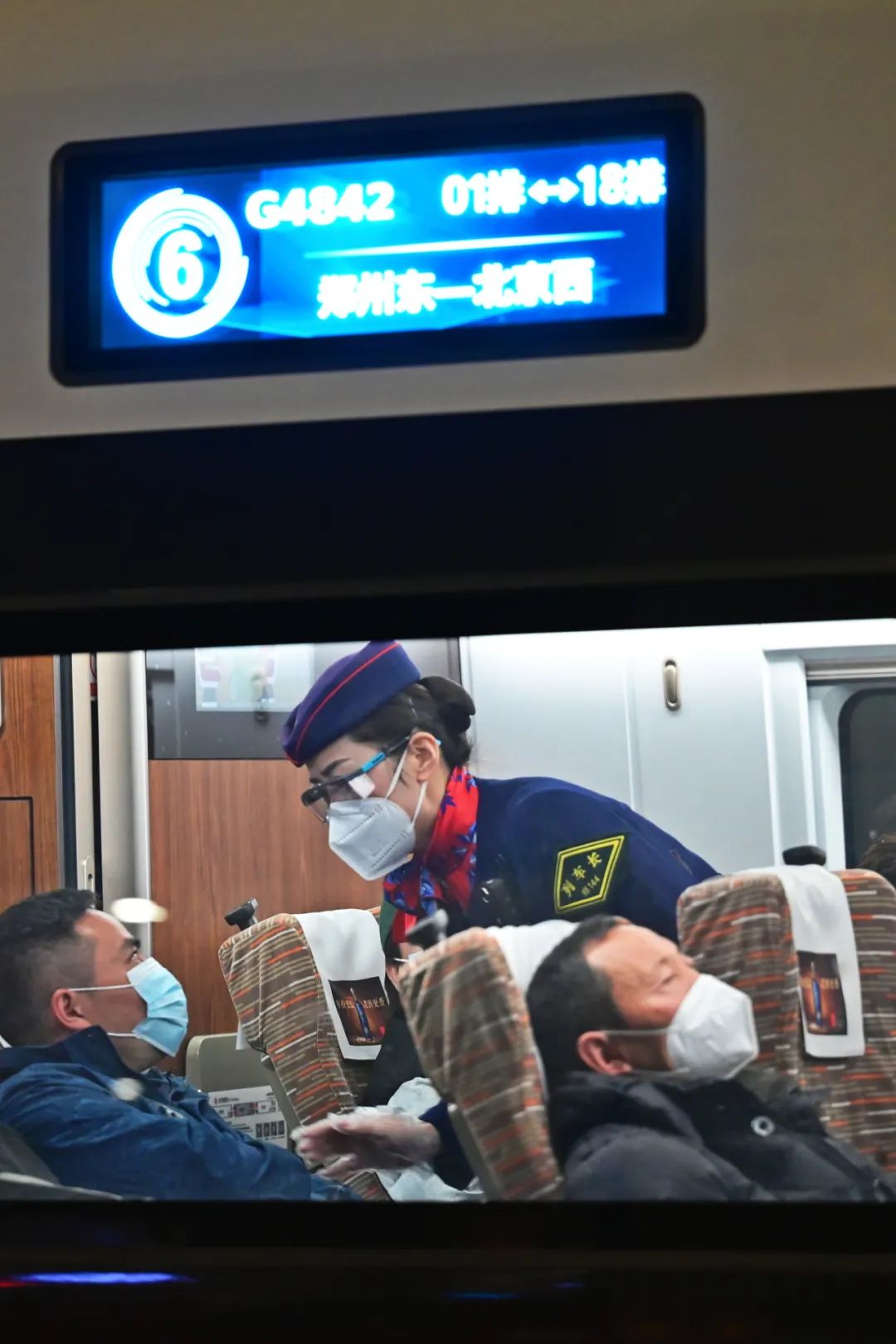 元宵节过后,随着务工流、学生流等客流的高度叠加,铁路迎来了又一次客流高峰。为满足节后旅客返程需求,提升高铁运输能力,集团公司开启高铁“夜间模式”,在客流集中的北京、上海、杭州、深圳、广州等方向,增开21列被称为“红眼高铁”的夜间高铁, G4842次列车就是其中一趟,由郑州客运段高铁三队郑渝乘务组担当值乘任务。