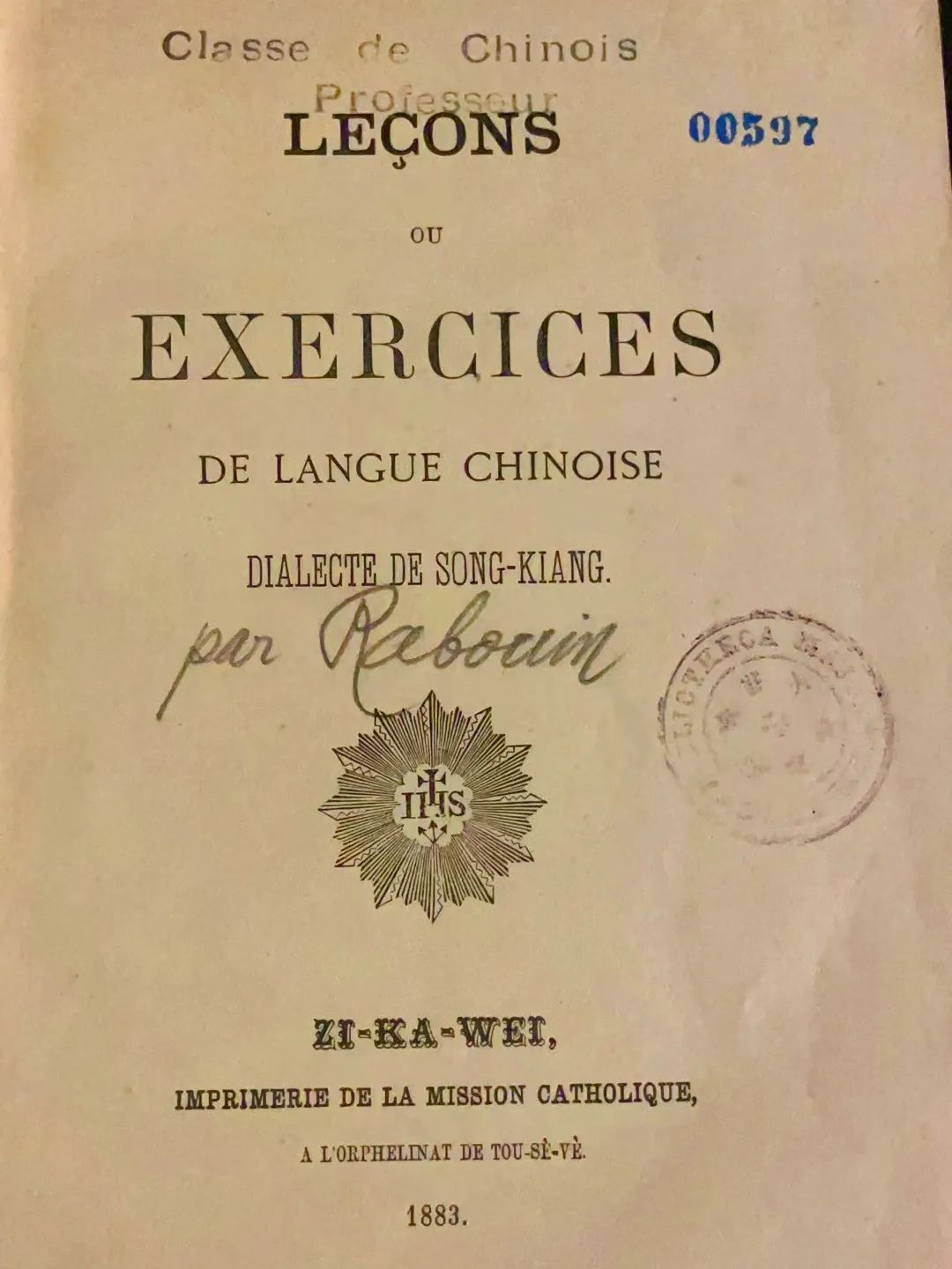 1883,Paul Rabouin:Leçons ou Exercices de Langue Chinoise Dialecte de Song-Kiang (Zi-Ka-Wei, Imprimerie de la Mission Catholique à L'orphelinat de T'ou Sè-Vè).《松江方言练习课本》一书中,实际记的是徐家汇地区的上海话,封面写明“ZI-KA-WEI”,当时徐家汇地区属松江府所辖,且松江府城比当时的上海县城影响大得多,从书中所记的上海话和松江话差别最大的代词等,可以判断记的是徐家汇地区的上海话。书中首次用接近法语读音的字母记录了天主教系统的上海方言音系,前31课都是以句子形式排列的,32课起以段落形式排列,全书上海话都注音,并译成法文。