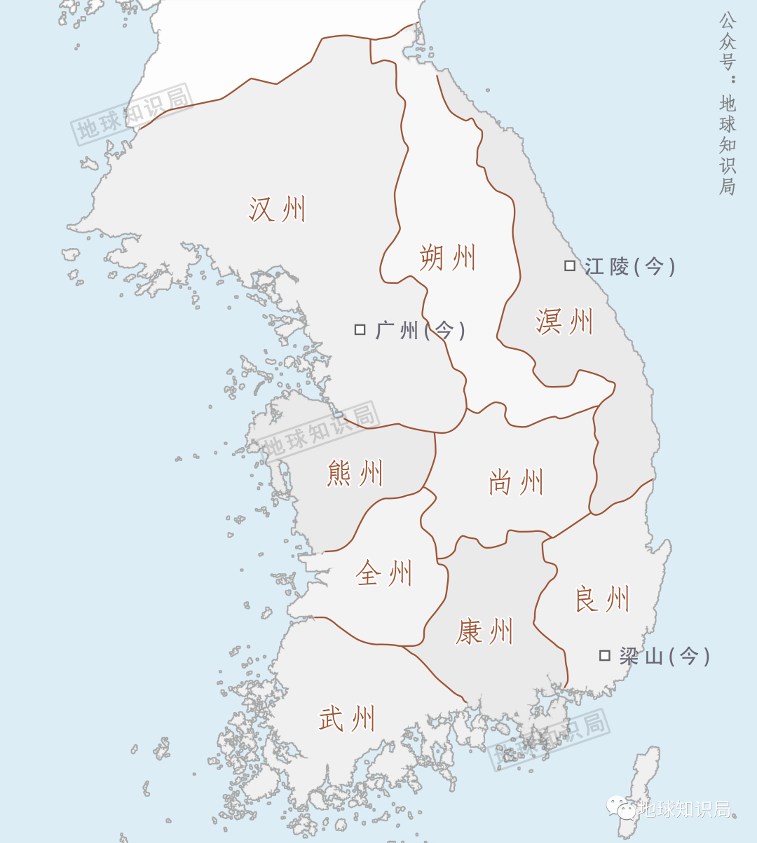 他们在行政区的划分上照搬西方大哥的州郡体系,设置九州。许多地名今天还保留,例如当初的武州郡治光州,今天还被升级为广域市。另外还有如广州(今在京畿道)、江陵(今在江原道)和梁山(今在庆尚南道)等一大批中国特色的地名。中国人看了,或许会心一笑。不过跟中国地名经过漫长的历史演变而来不同,半岛上的地名完全是统治者简单粗暴地安上去的。
