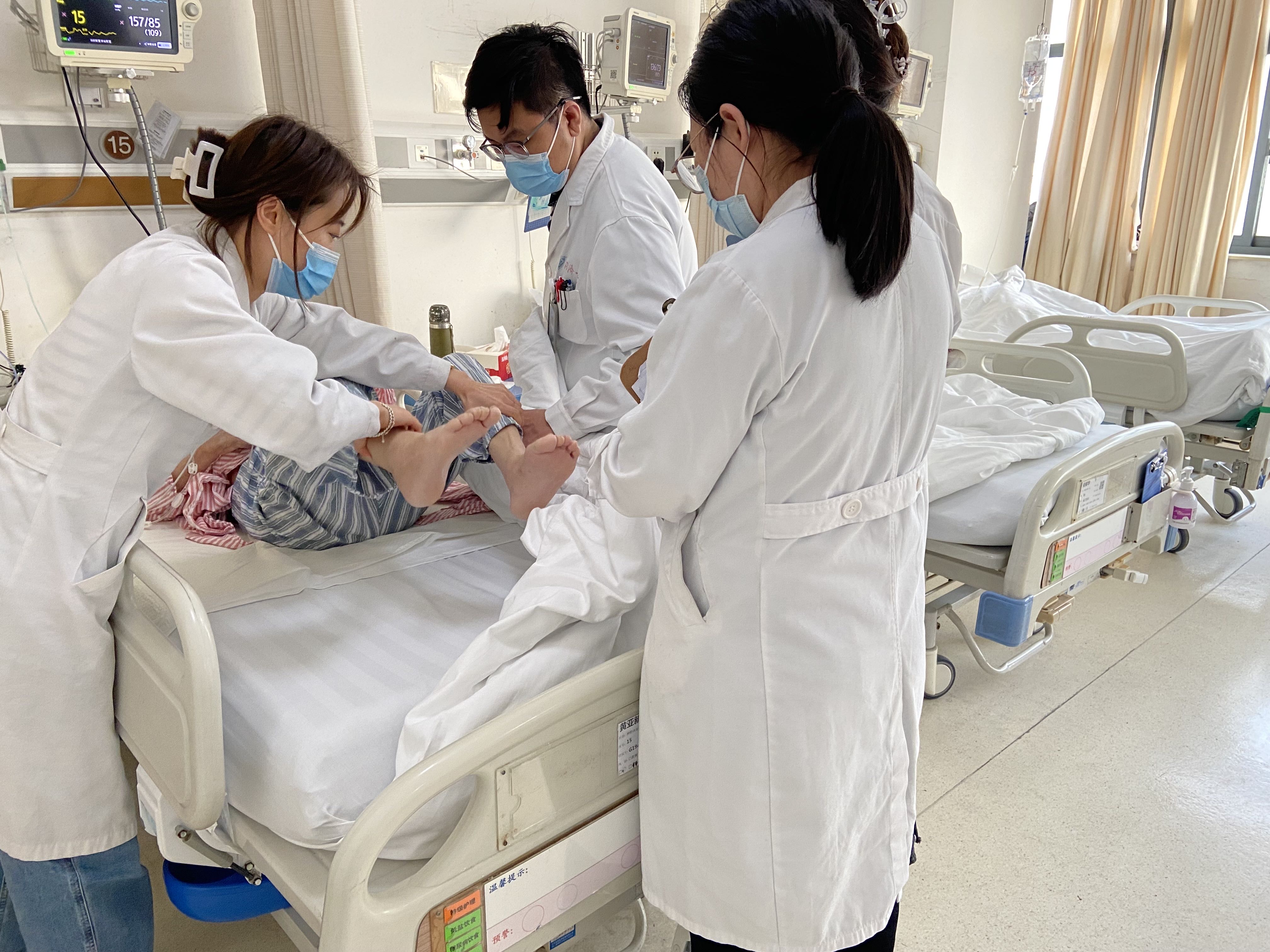 医生在查房时,为阿婆检查身体恢复情况。 上海市第十人民医院 供图