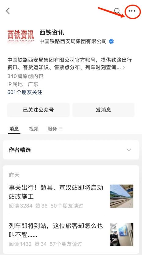 1. 打开“西铁资讯”微信公众号