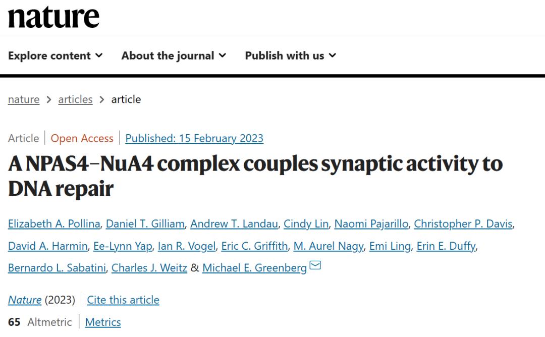 近日,哈佛医学院的研究人员在Nature上发表了题为“A NPAS4–NuA4 complex couples synaptic activity to DNA repair”的研究。该研究发现了一种发生在神经元中的新的DNA修复机制,解释了为什么神经元在高强度重复工作的情况下仍能持续工作。