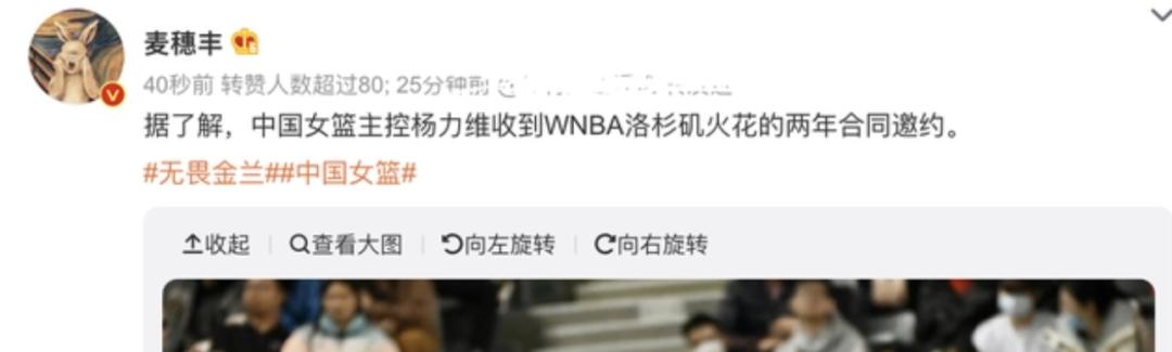 据消息人士透露,中国女篮国家队队长杨力维日前收到了来自WNBA洛杉矶火花队两年正式合同的邀约。若能最终成行,那么杨力维也将成为继韩旭和李月汝之后又一位登陆世界女篮最高水平联赛的现役女篮国手。