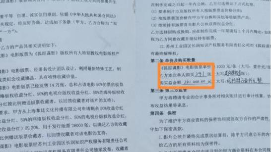 “也有的公司舍不得花这笔钱,那就只能从联合出品方那里购买了,没有署名,顶多给买份额的人出示一份授权书。不过这个份额肯定有溢价,买到份额之后,再加上溢价拆成小份转卖给个人或者公司,有的公司还会继续往下转卖,最后到普通投资者手里,一份3万或者5万都有,我还知道有的热门电影一份卖20万,卖得都还不错。”