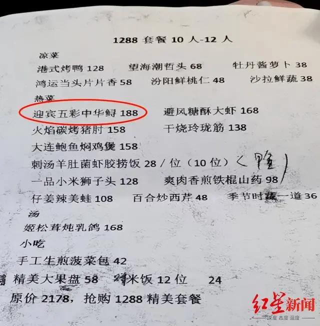 ▲菜单中的中华鲟菜品经营者把人工繁殖的普通鲟鱼通过菜谱和套餐宣称“中华鲟”进行销售的行为,违反《中华人民共和国反不正当竞争法》,属于对其商品的质量“作虚假或引人误解的商业宣传,欺骗、误导消费者”的不正当竞争行为,依法应予以行政处罚。目前,此案调查已终结。